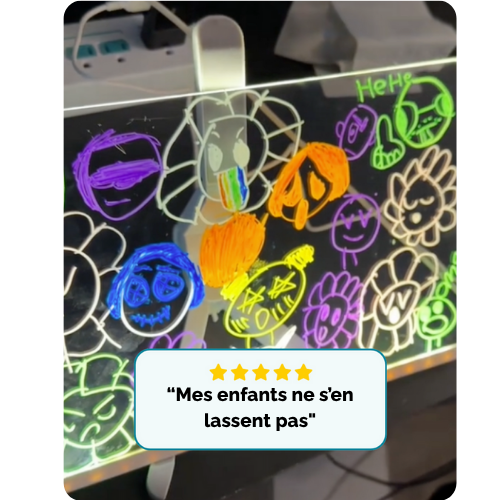 Oui, le tableau LED est entièrement sûr pour les enfants. Il est fabriqué avec des matériaux non toxiques et des bords arrondis pour éviter tout risque de blessure. Comme toujours, la surveillance d’un adulte est recommandée pour les plus jeunes.