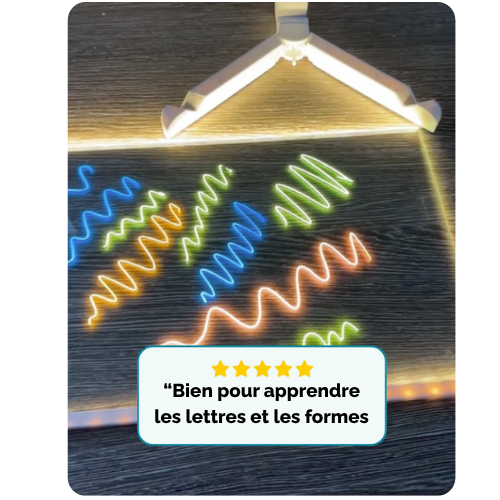Produit incroyable! Mon fils adore comment la planche s'allume et cela l'aide vraiment à s'entraîner au traçage.